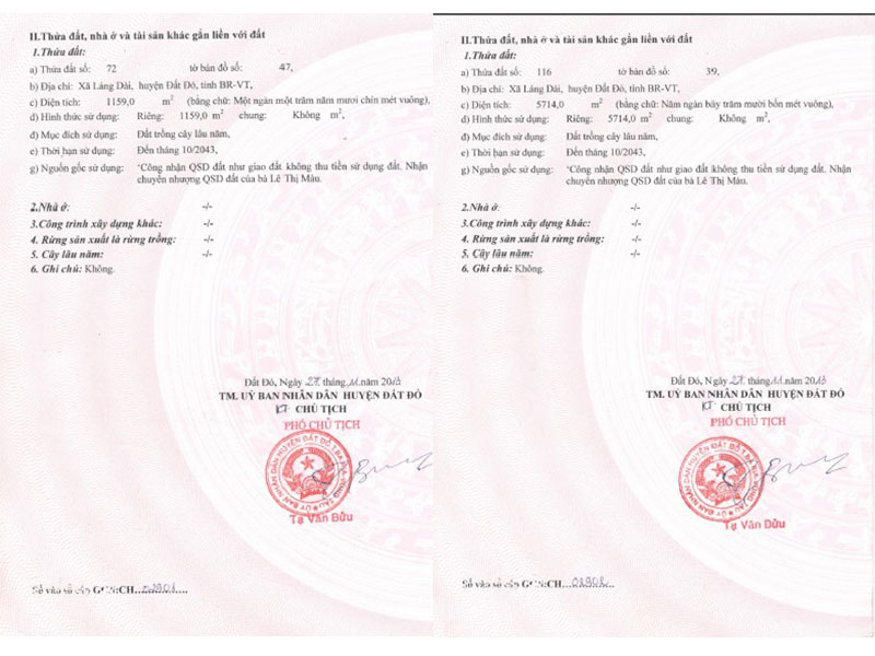 2. Cần bán 37 nền đất thổ cư Láng Dài Bà Rịa. Mặt tiền đường 5m.