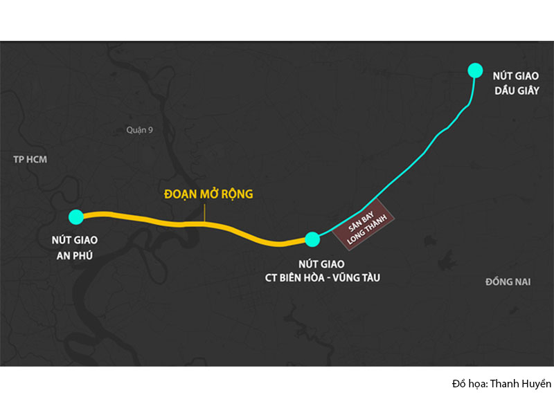 Đoạn mở rộng được đề xuất làm trên chiều dài 24 km trong tổng 55 km toàn tuyến. Điểm đầu từ cầu Bà Dạt (quận 2, TP HCM) đến nút giao cao tốc Biên Hòa – Vũng Tàu (huyện Long Thành, Đồng Nai). Đoạn này mở rộng mặt đường gấp đôi hiện nay, từ 4 lên 8 làn xe. Phần còn lại từ Long Thành đến Dầu Giây, dài 31 km giữ nguyên.